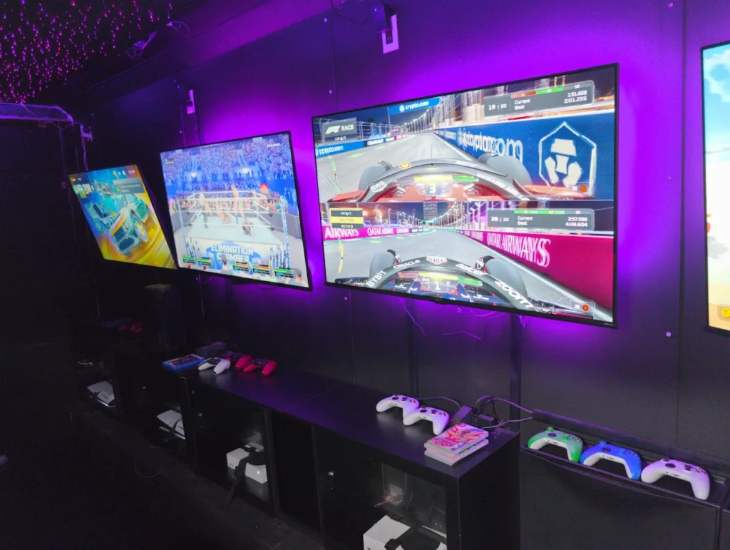 Enjoy our library of 100+ gaming titles on the latest consoles from PS5s, XBOXs, Nintendo Switchs, Wii, VR and more!